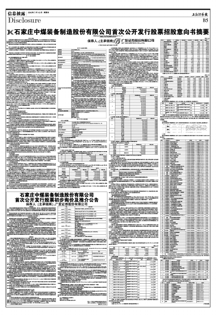 石家庄中煤装备制造股份有限公司首次公开发行股票招股意向书摘要