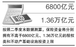 根据昨日出炉的《关于保险资金投资股权和不动产有关问题的通知》规定,按照二季度末数据测算,保险资金将分别拥有不高于6800亿元、1.36万亿元的股权类和不动产基础设施投资上限。