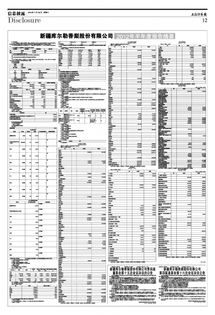 新疆库尔勒香梨股份有限公司2012年半年度报告摘要