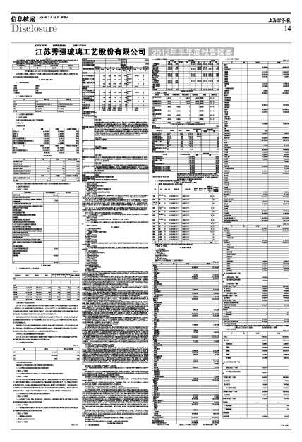 江苏秀强玻璃工艺股份有限公司2012年半年度报告摘要