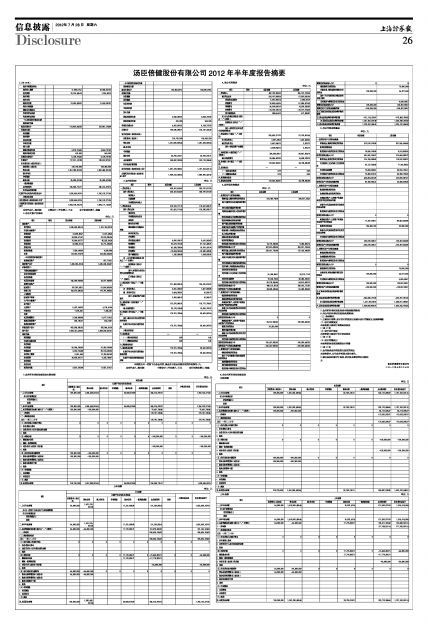 汤臣倍健股份有限公司2012年半年度报告摘要