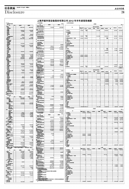 上海开能环保设备股份有限公司2012年半年度报告摘要