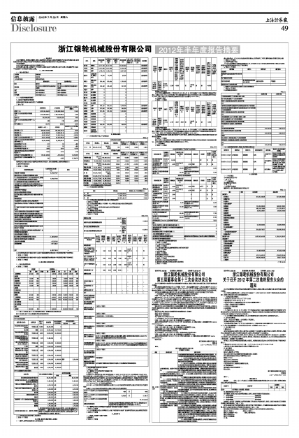 浙江银轮机械股份有限公司2012年半年度报告摘要