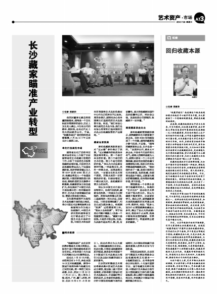 他认为中国艺术市场正在转型中,拍卖行在洗牌,藏家也在洗牌。一种是实力比较强的,洗得快洗得慢无所谓;二是湖南的一些大企业、民营企业,已经在低调收藏了,怕自己成为媒体焦点。他预测“洗牌”过程需要两三年,“我本人也在洗牌”。至于拍卖公司能不能跟上?这是一个很重要的关键点。“藏家不是没钱,不是舍不得出钱。但是,先决条件是东西正、精、美,有前瞻性。真正的收藏家知道作品的前瞻性以后,肯定会出钱,这是拍卖公司要做的,收藏家不一定全懂。”
