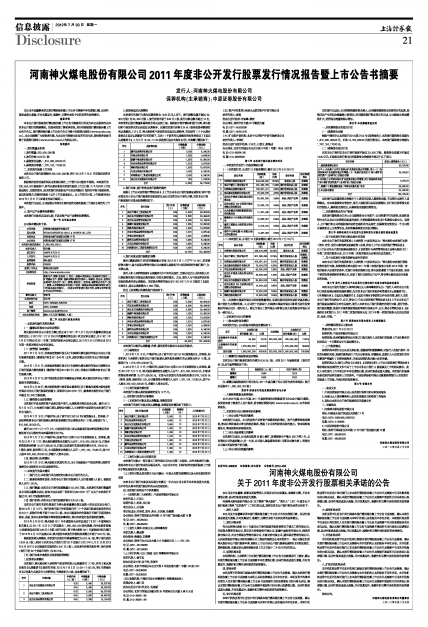 河南神火煤电股份有限公司2011年度非公开发行股票发行情况报告暨上市公告书摘要
