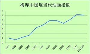 根据梅摩艺术品指数研究中心最新发布的报告,梅摩中国现当代油画指数在2012年的前7个月下跌了2.6%。相比于前6个月下降4%,7月底的下跌幅度减小到了2.6%。7月份拍卖市场进一步表现出趋于稳定的迹象。艺术品市场的改善可能与以下因素有关:第一,房地产市场在一定程度上回暖;第二,持续宽松的货币供给为市场的流动性提供了保障。(梅建平)