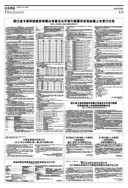 浙江金卡高科技股份有限公司首次公开发行股票并在创业板上市发行公告