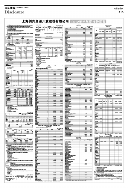 上海创兴资源开发股份有限公司2012年半年度报告摘要