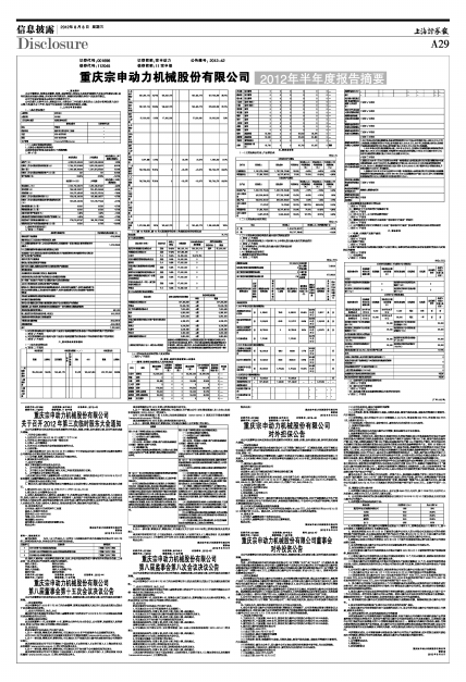 重庆宗申动力机械股份有限公司2012年半年度报告摘要