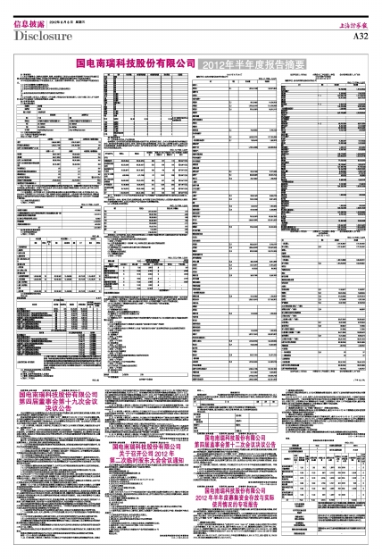 国电南瑞科技股份有限公司2012年半年度报告摘要