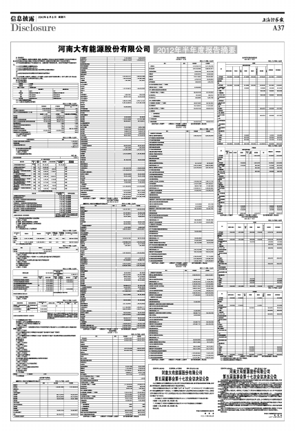 河南大有能源股份有限公司2012年半年度报告摘要