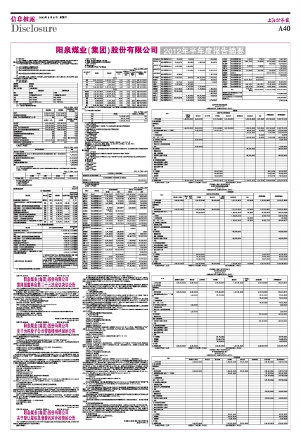 阳泉煤业(集团)股份有限公司2012年半年度报告摘要