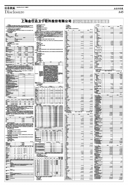 上海金仕达卫宁软件股份有限公司2012年半年度报告摘要