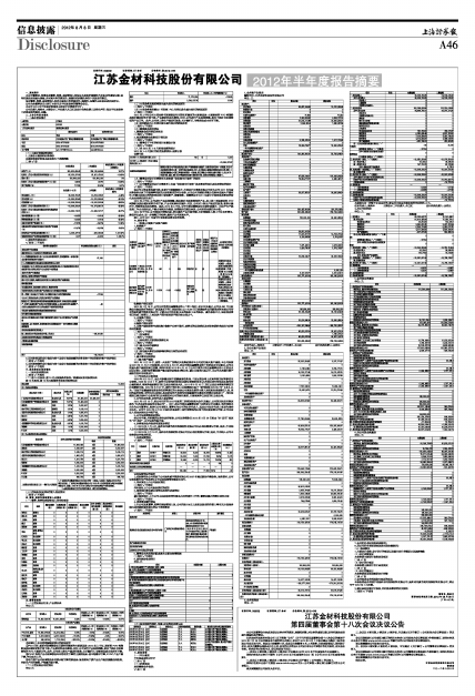 江苏金材科技股份有限公司2012年半年度报告摘要