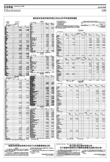 国电南京自动化股份有限公司2012年半年度报告摘要
