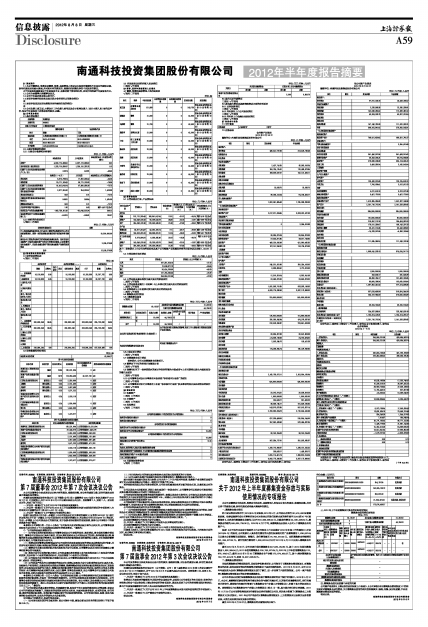 南通科技投资集团股份有限公司2012年半年度报告摘要
