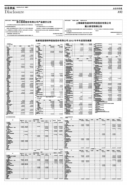 张家港富瑞特种装备股份有限公司2012年半年度报告摘要