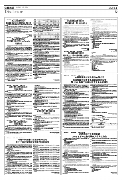 浙江三花股份有限公司(以下简称“公司”)第四届董事会第十二次临时会议于2012年8月5日以书面形式或电子邮件形式通知全体董事,于2012年8月10日(星期五)以通讯方式召开。会议应出席董事(含独立董事)9人,实际出席9人。本次会议出席人数、召开程序、议事内容均符合《公司法》和《公司章程》的规定。本次会议审议通过了以下议案: