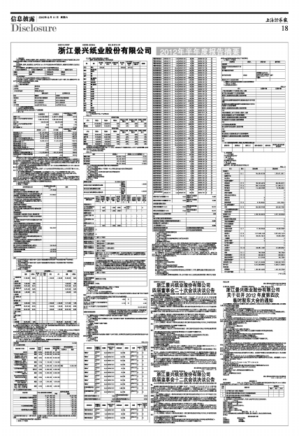 《浙江景兴纸业股份有限公司2012年半年度报告摘要》全文刊登于《上海证券报》、《证券时报》和巨潮资讯网站,《浙江景兴纸业股份有限公司2012年半年度报告全文及摘要》全文披露于巨潮资讯网。