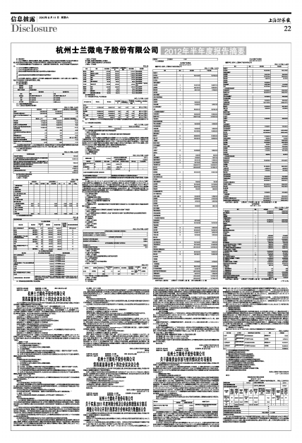 一、杭州士兰微电子股份有限公司2012年半年度报告及摘要