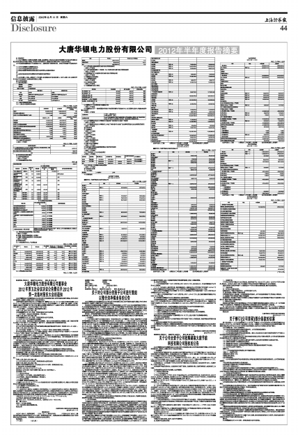 大唐华银电力股份有限公司2012年半年度报告摘要