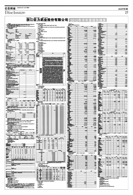 浙江佐力药业股份有限公司2012年半年度报告摘要