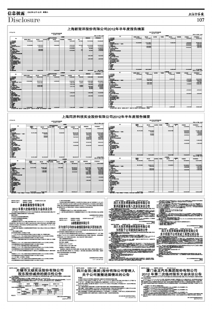 上海同济科技实业股份有限公司2012年半年度报告摘要