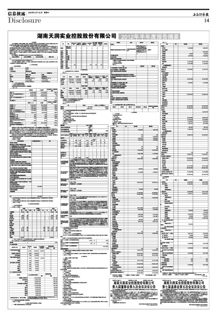 湖南天润实业控股股份有限公司2012年半年度报告摘要