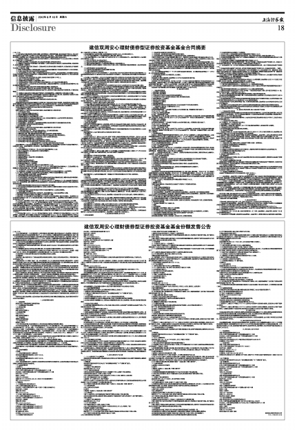 建信双周安心理财债券型证券投资基金基金合同摘要