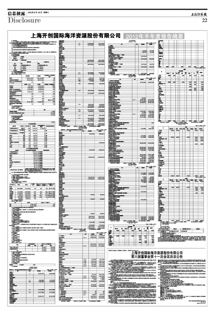 上海开创国际海洋资源股份有限公司2012年半年度报告摘要