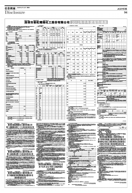 深圳市彩虹精细化工股份有限公司2012年半年度报告摘要