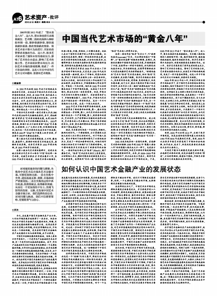 在这样的认识之下,中国艺术品市场的支撑体系建设应该备受关注,并且要逐步进入人们的视野,特别是战略支撑体系、政策法规支撑体系、市场支撑体系、鉴定评估体系、财税支撑体系、信息支撑体系、制度创新支撑体系、人才培育支撑体系及画廊与拍卖行运行机制等,要成为中国艺术品市场发展与深入前行的一个重要前提,这也更是中国艺术金融发展的基础。