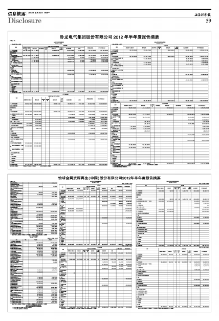 卧龙电气集团股份有限公司2012年半年度报告摘要