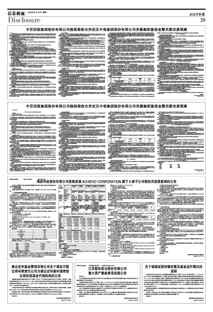 7、中百集团董事会编制的重组预案充分披露了本交易存在的重大不确定性因素和风险事项。
