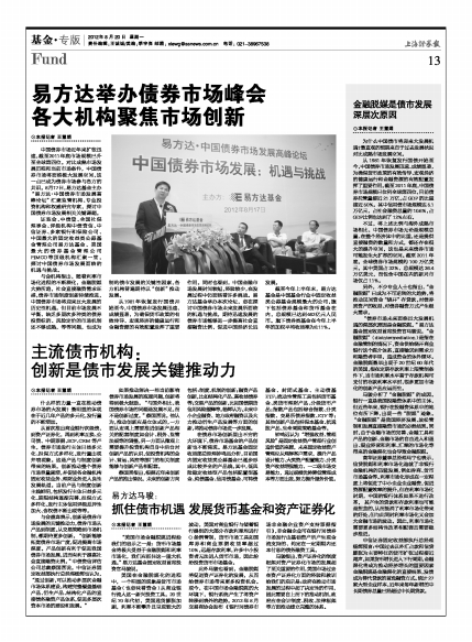 易方达马骏:抓住债市机遇 发展货币基金和资产证券化