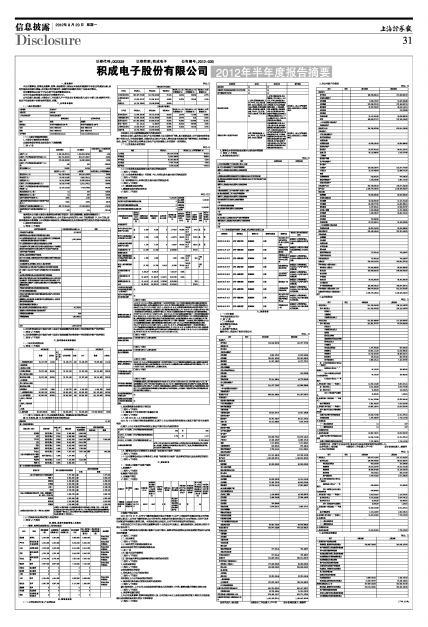 积成电子股份有限公司2012年半年度报告摘要