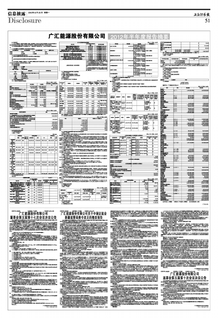 广汇能源股份有限公司2012年半年度报告摘要