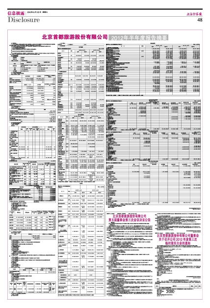| 编制单位:北京首都旅游股份有限公司 2012年1-6月单位:人民币元 | |||||||||