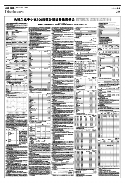 注:1.截止2012年06月30日,长城久兆中小板300指数分级份额净值0.945元,长城久兆稳健指数份额净值1.024元,长城久兆积极指数份额净值0.892元;基金份额总额63,060,521.94份,其中长城久兆中小板300指数分级份额38,207,638.94份,长城久兆稳健指数份额9,941,153.00份,长城久兆积极指数份额14,911,730.00份。