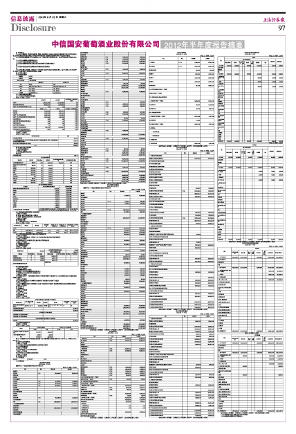 中信国安葡萄酒业股份有限公司2012年半年度报告摘要
