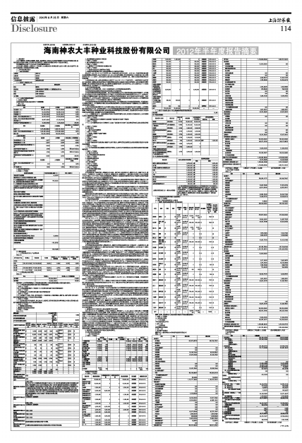 海南神农大丰种业科技股份有限公司2012年半年度报告摘要