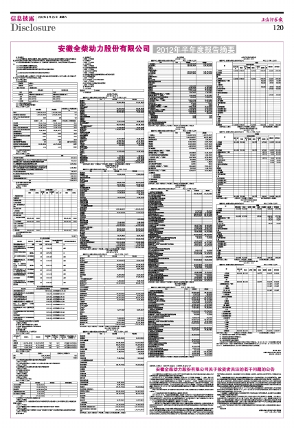 安徽全柴动力股份有限公司2012年半年度报告摘要