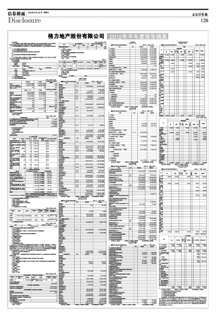 格力地产股份有限公司2012年半年度报告摘要