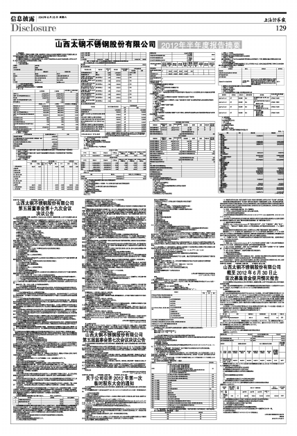 山西太钢不锈钢股份有限公司2012年半年度报告摘要
