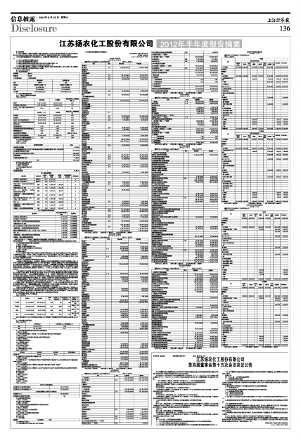江苏扬农化工股份有限公司2012年半年度报告摘要
