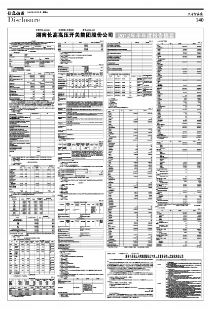 湖南长高高压开关集团股份公司2012年半年度报告摘要