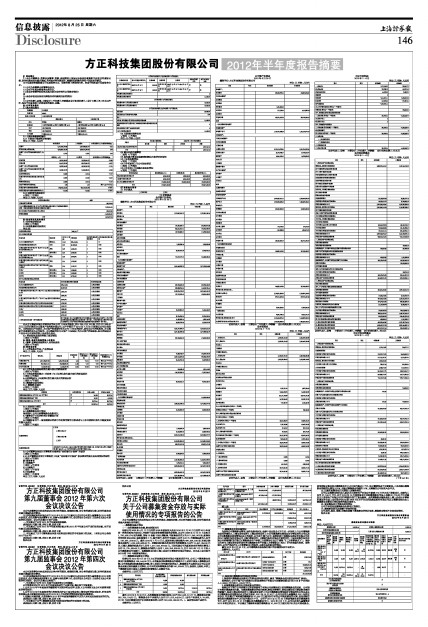 方正科技集团股份有限公司2012年半年度报告摘要