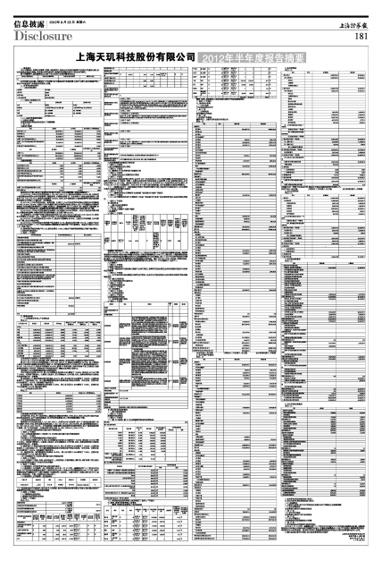 上海天玑科技股份有限公司2012年半年度报告摘要