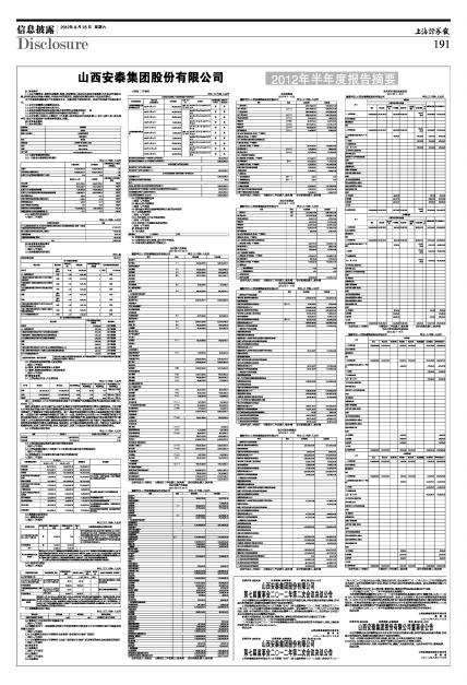 山西安泰集团股份有限公司2012年半年度报告摘要