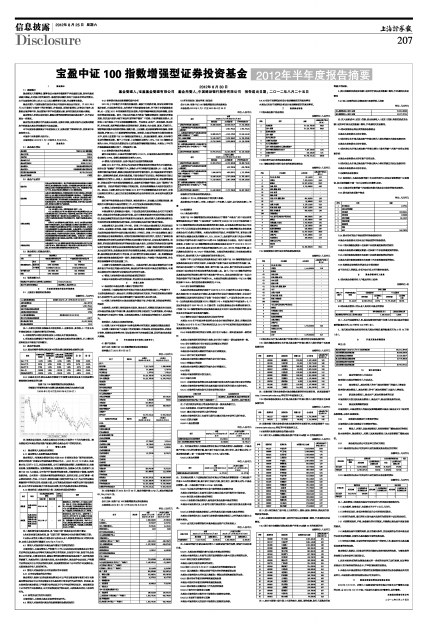 宝盈中证100指数增强型证券投资基金2012年半年度报告摘要